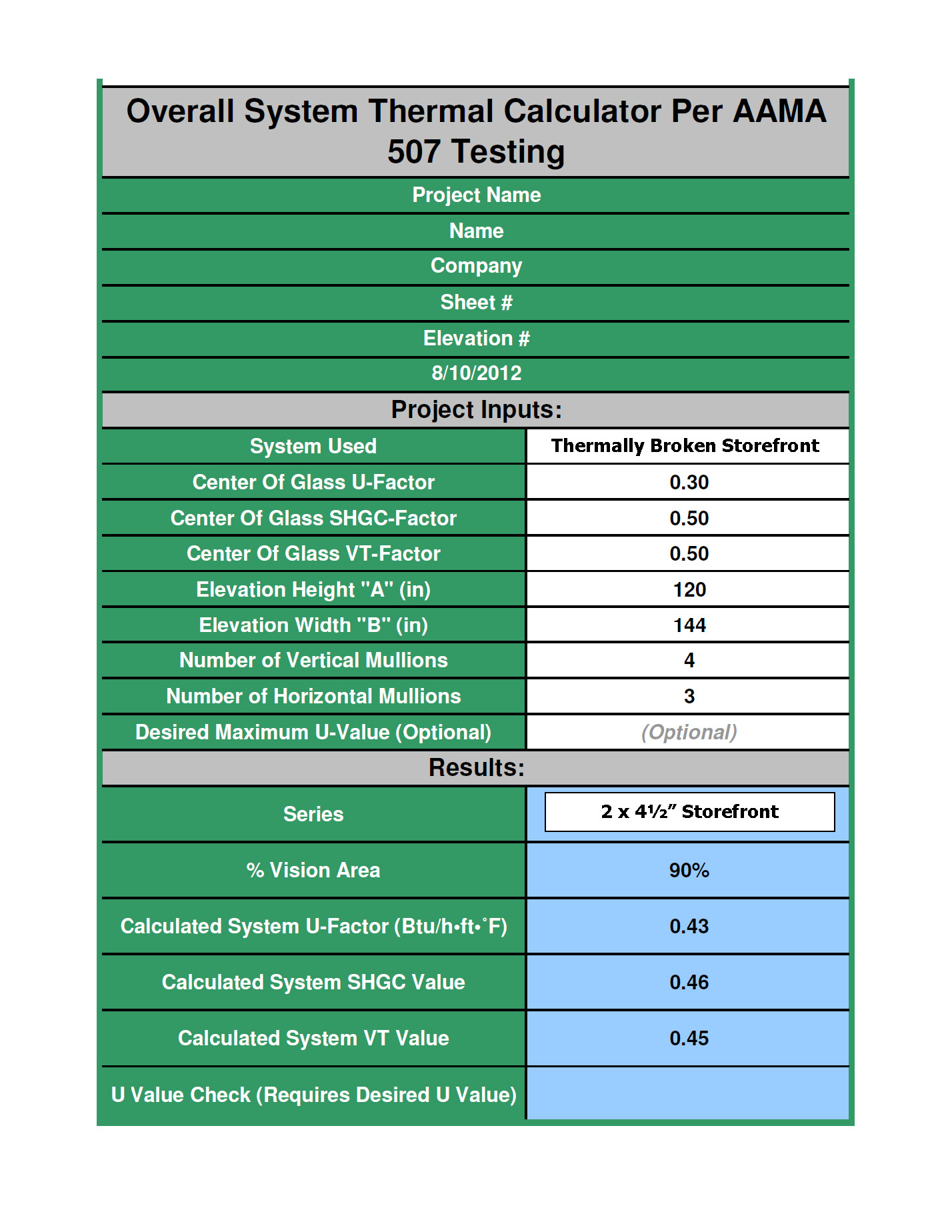 The thermal analysis below shows that using standard storefront with a single thermal break and glass with a Center of Glass (COG) U-Factor of 0.30, does not meet the “Assembly U-Factor” code requirement of 0.35 of less.