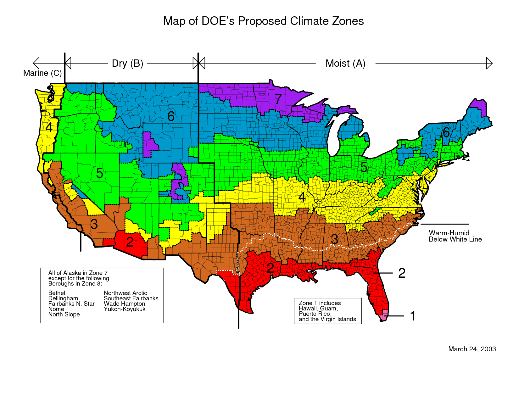 The table below shows the U-Factor and SHGC requirements for climate zone 5 per the IgCC (in green on the map below).