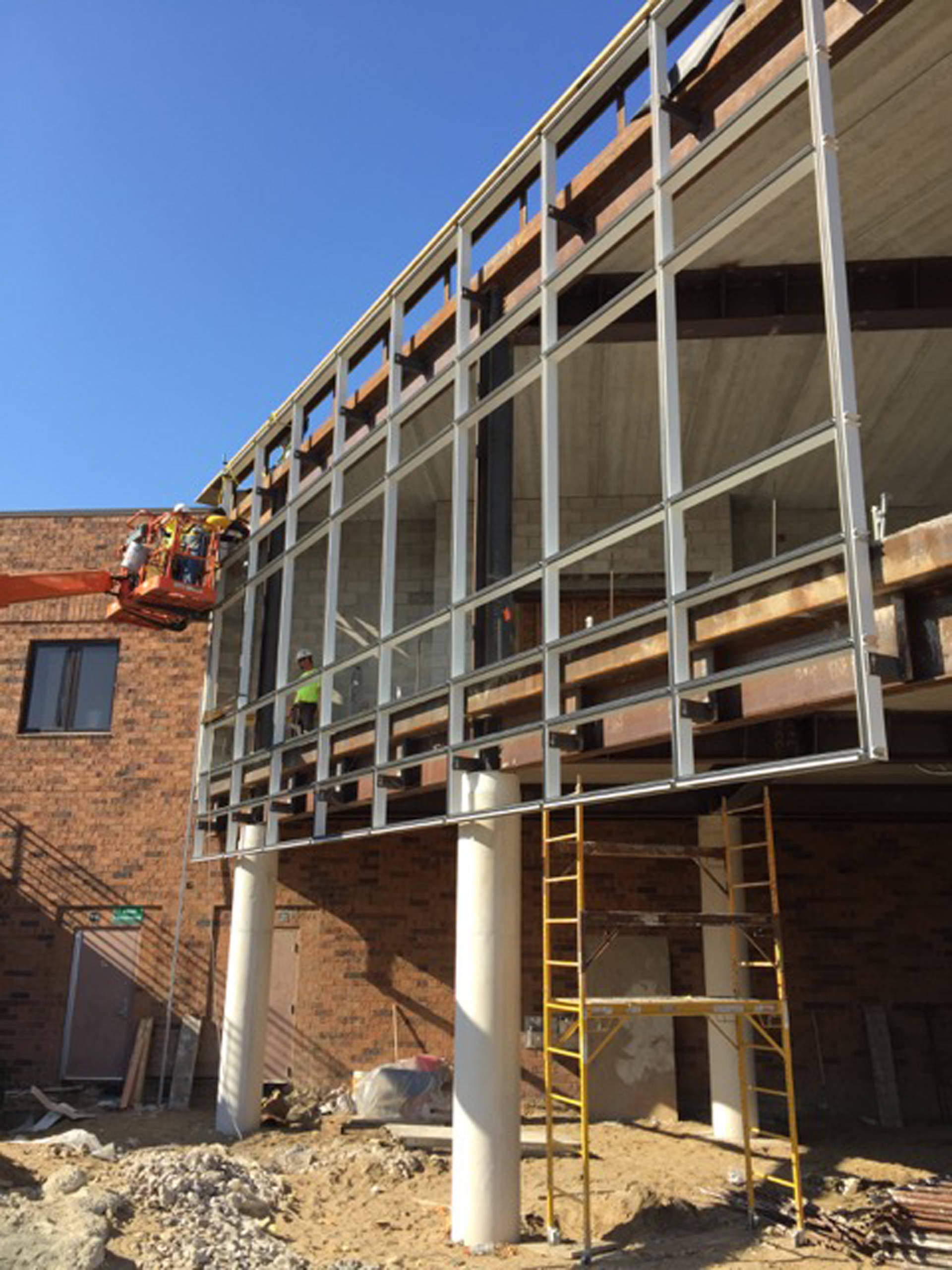 In light of the project’s challenges and complexity, McCarthy & Smith’s superintendent Dave Sprecher said the curtainwall “went together pretty well. The teamwork was good. And, the school’s very happy with the result.”