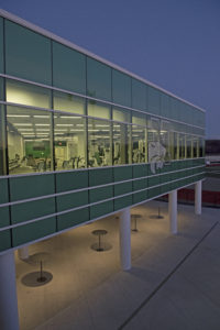 Photo by Preferred Glass Inc.“Construction-wise, the main challenge was access,” notes Castellana. “The site is at a depressed level with no vehicular access from the main building level. Construction space was greatly restricted due to the addition’s position directly between the existing building and the edge of the existing track/football field. A temporary retaining wall and ramp were constructed to accommodate construction vehicles and equipment.”
