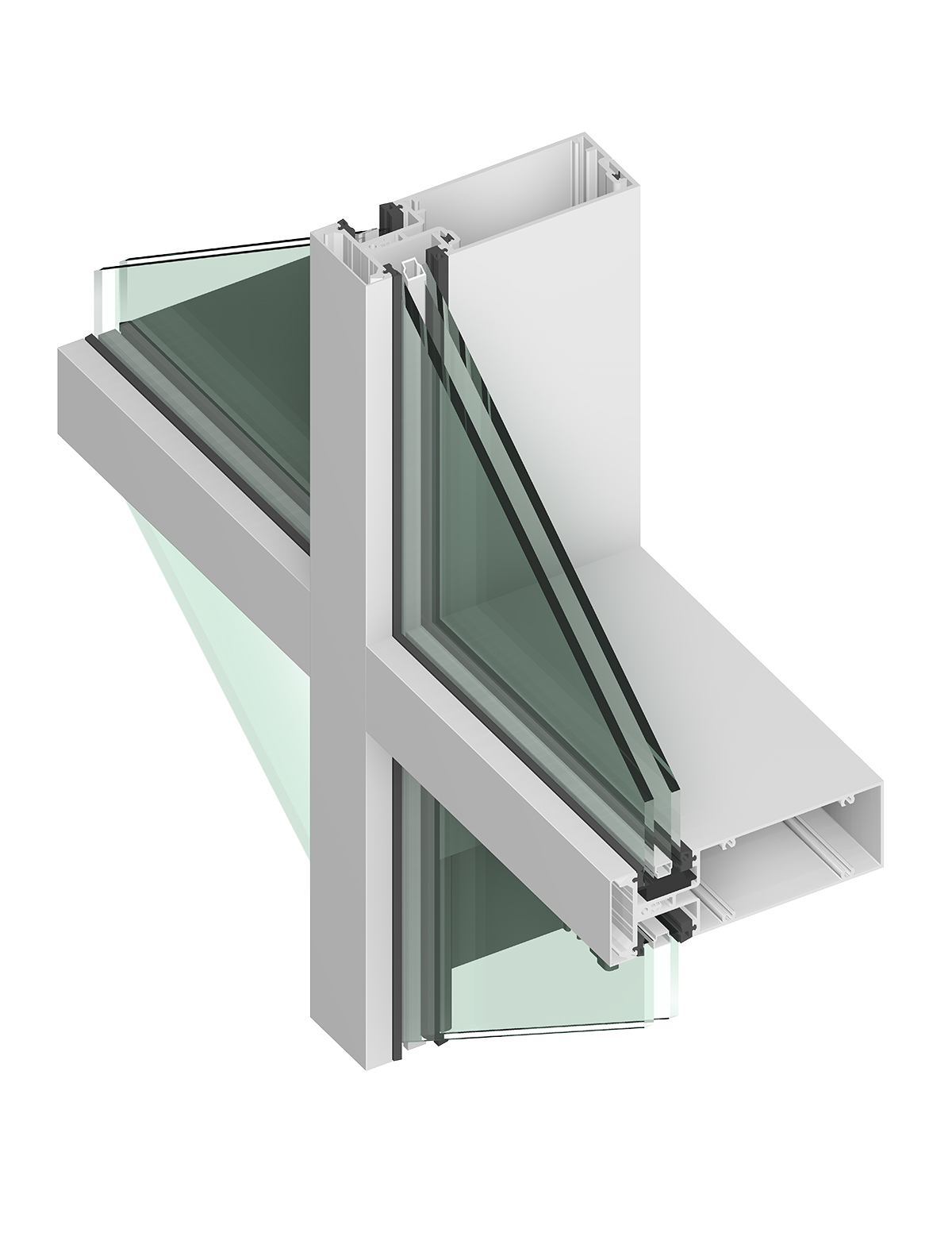 - Outside glazed pressure-plate system available in captured and structural glazed configurations