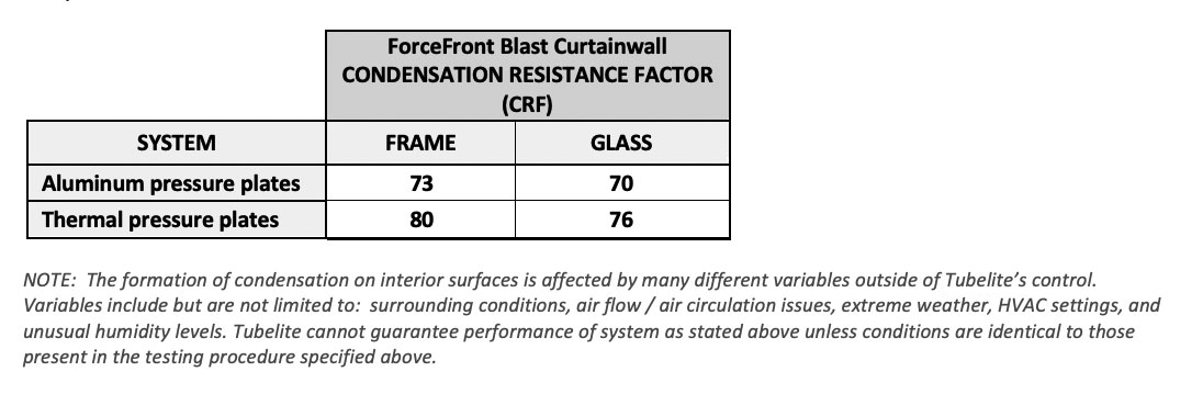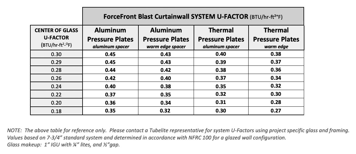 | ForceFront Blast Curtainwall Product Specifications | ||||||||