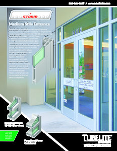 Tubelite’s ForceFront Medium Stile impact resistant entrance doors are rated for windzone 4 – large & small missile impact [ASTM E1886-05/1996-09] and passed the forced entry test [AAMA 1304-02]. These 4″ Medium Stile doors are glazed with 1-1/16″ thick laminated insulated glass and are wet glazed on the interior side. Transom glass in all door frames are wet glazed. Door frames are non-thermal, and are available with options for heavy-wall extrusions and steel reinforcing where required. Thresholds are equipped with bulb weatherseal gaskets and are ADA accessible. Hinging hardware options include heavy duty morised butts and continuous gear hinges. Locking types can be concealed vertical rod panics or deadlocks.