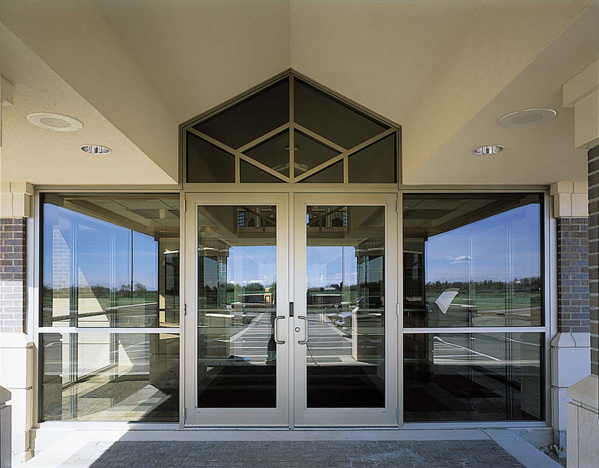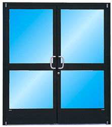 Our Standard Medium Entrances are designed for moderate to heavy use in commercial applications. Standard Medium Stile has 3-1/2″ (88.9mm) vertical stiles and top rail, and 6-1/2″ (165mm) bottom rail – optional up to 10″ for ADA compliance. “Stacked” bottom rails beyond 10″ also available. The smooth design of Tubelite’s door hardware features a convenient pull handle and push bar with lock location 36″ above the finished floor. Stock doors and framed are anodized with clear, dark bronze or black, and readily available for quick delivery. Our doors come with newly designed “blade” style glass stops as well as build-in glass jacks, which aid in squaring up the doors in relation to the frames.