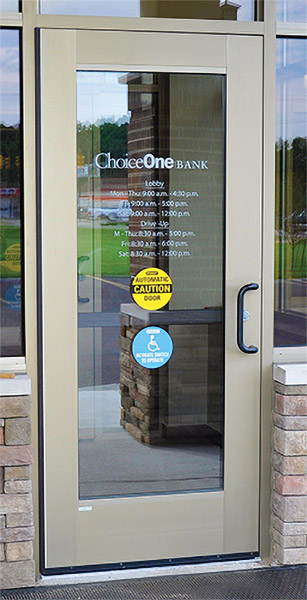 Therml=Block Entrances are furnished with mortised butt hinges, offset pivots or continuous hinges as specified. Standard deadbolt locks, and concealed vertical rod or rim panic exit devices also may be selected. Standard pull handles have been designed for ADA access and have matching push bars. Our doors come with newly designed “blade” style glass stops as well as built in glass jacks, which aid in squaring up the doors in relation to the frames.
