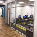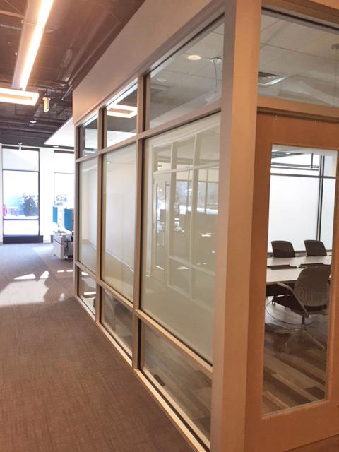 INT45 Interior Flush Glaze Framing allows easy incorporation of standard aluminum storefront with metal stud and drywall systems commonly used in commercial office and retail space. Multiple adapters are available in configurations for installing the aluminum frames either before or after the drywall, completely covering the end of the stud wall. Installation is simple and fast with perimeter trim members that are pre applied on one side of the frame opening.