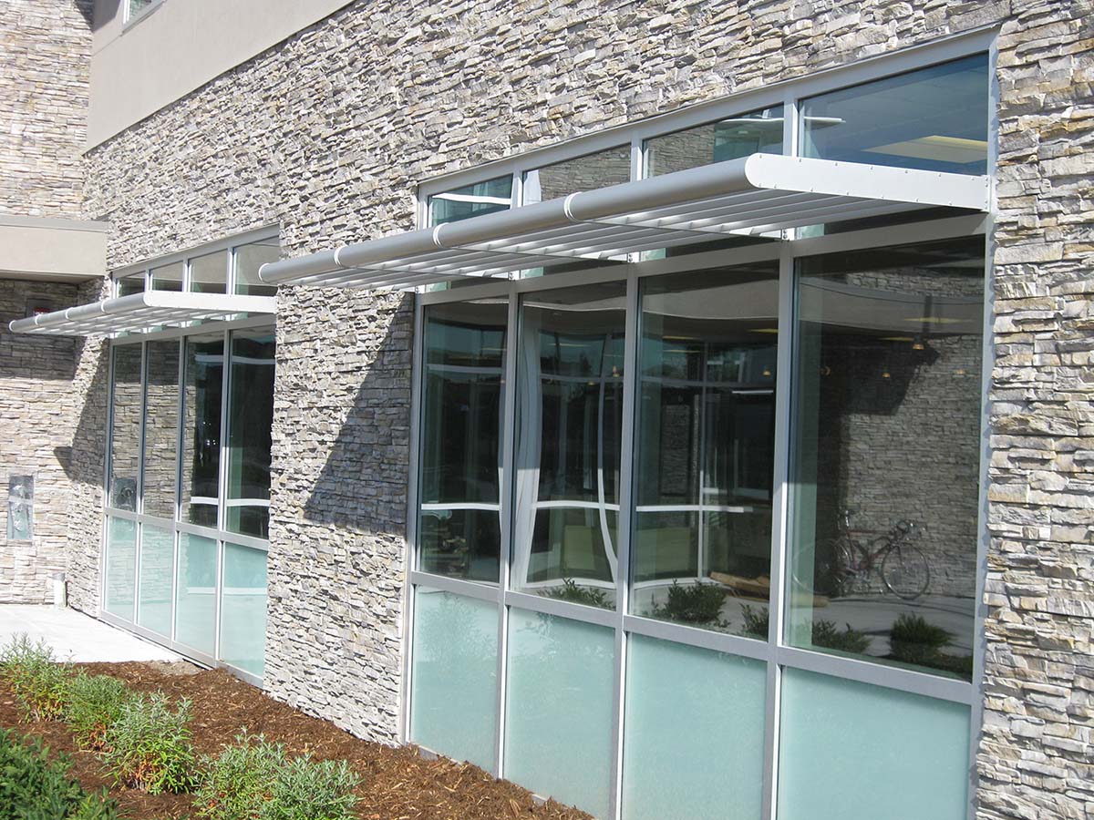 Effectively reduce Solar Heat Gain by shading vision glass areas of the building envelope with Tubelite’s MaxBlock Sun Shades. Cooling costs can be significantly lowered while still allowing natural light to fill the workspace.