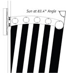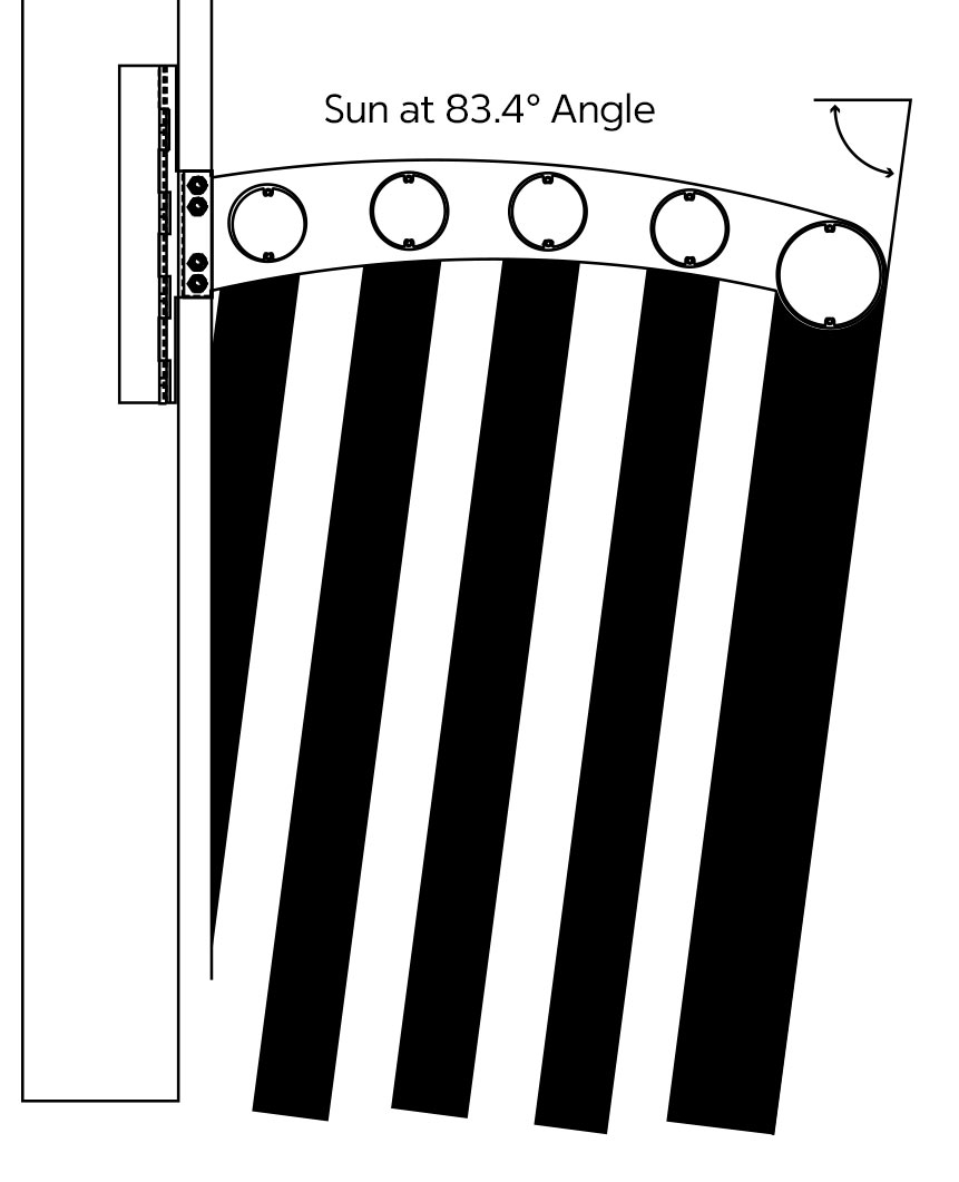 25” curved outrigger with Tubular Blade shown: 30 degrees Latitude North, Summer Solstice, High Noon. Shade factor 63%.*