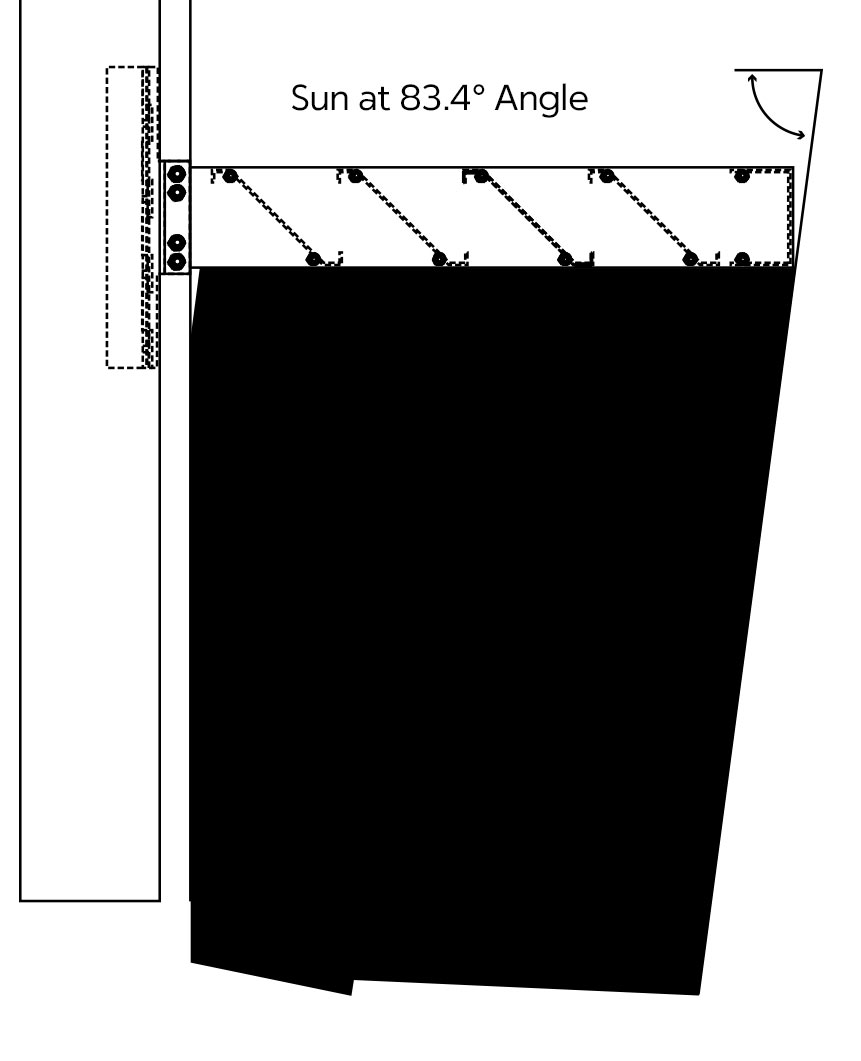 25” straight outrigger with Z” Blade shown: 30 degrees Latitude North, Summer Solstice, High Noon. Shade factor 97%.*