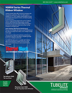 Tubelite’s 900RW Series offers solutions for between slab window wall applications. The 2-1/4” wide system is available in 4-1/2” and 6” depths. Glazing options include all captured, silicone glazed verticals, and exterior glazing for spandrel areas.