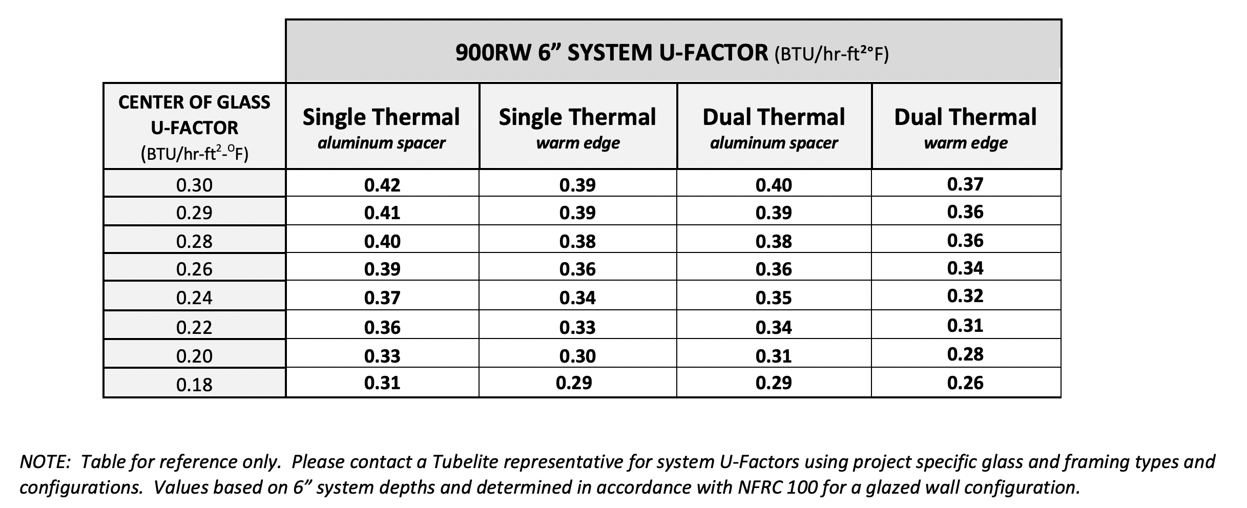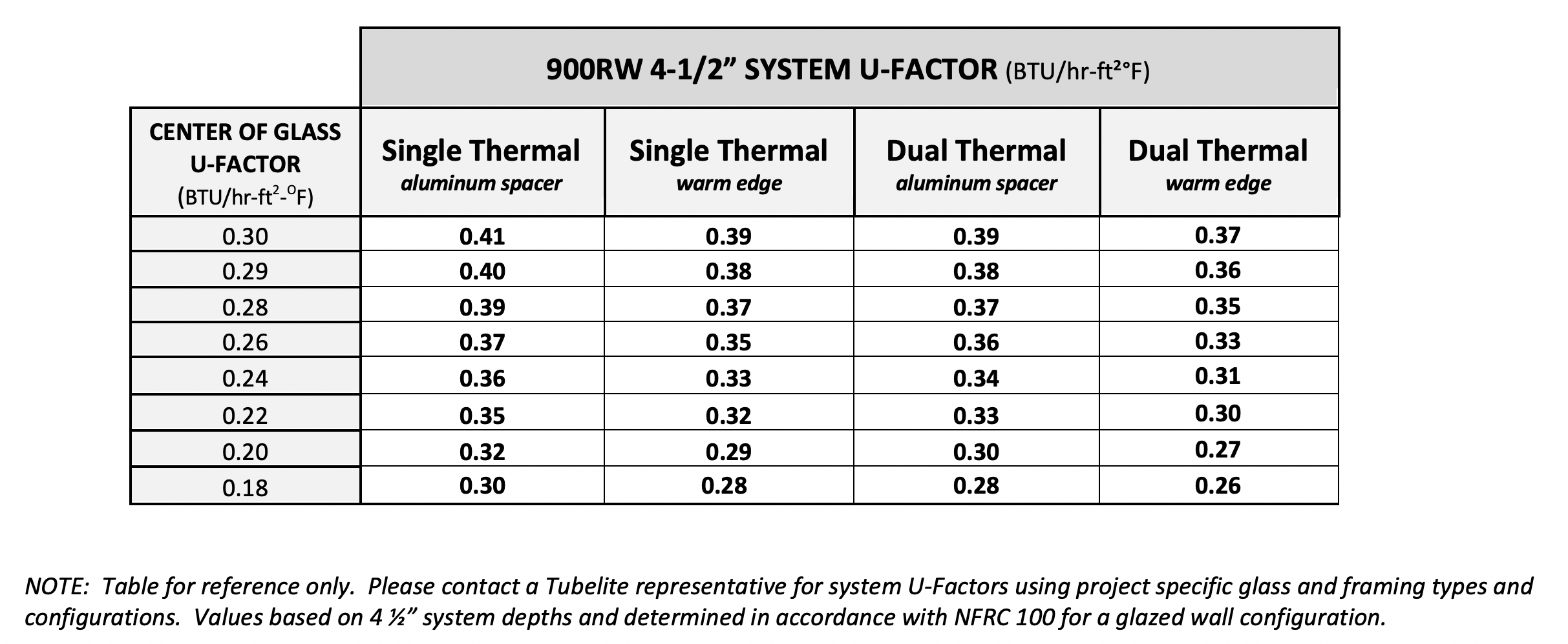 ** U-Factor per NFRC 100: COG = 0.24 with warm edge spacer, 1-3/4” x 4-1/2” non-thermal frame.