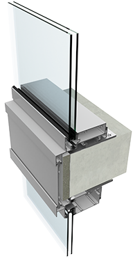 Optional integrated slab edge covers can be extruded or brake metal to finish off the building’s exterior. The system design eliminates the need for an exterior seal at the sill starter. Head, sill and jamb starters enable complete installation from the inside of the building. The 3” sightline head starter also provides +/- ¾” vertical interstory movement.